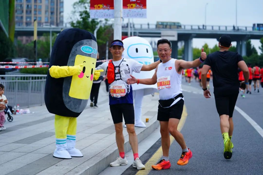 *在正赛加油点,长马选手与可孚超级条机器人偶合影互动。